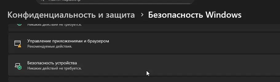 – Перейдите в ПараметрыКонфиденциальность и безопасностьБезопасность WindowsБезопасность устройства.