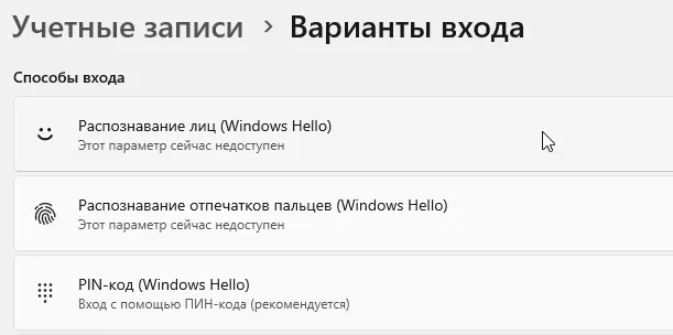 3. Настройка Windows Hello