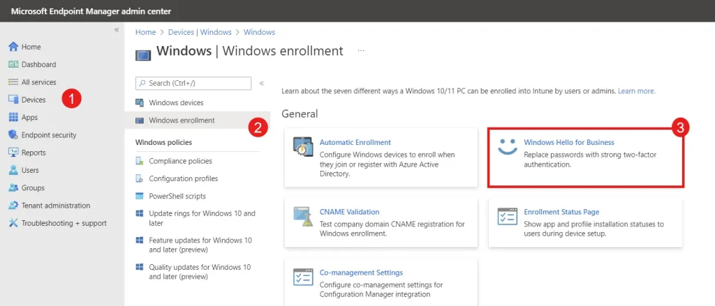 – Устройство должно быть присоединено к Microsoft Entra ID (или гибридное присоединение).