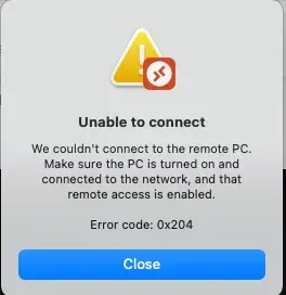 – 0x204 – удалённый компьютер недоступен, проверьте сетевые настройки.