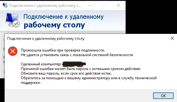 – Ошибка аутентификации – включите поддержку NLA и проверьте логин/пароль.