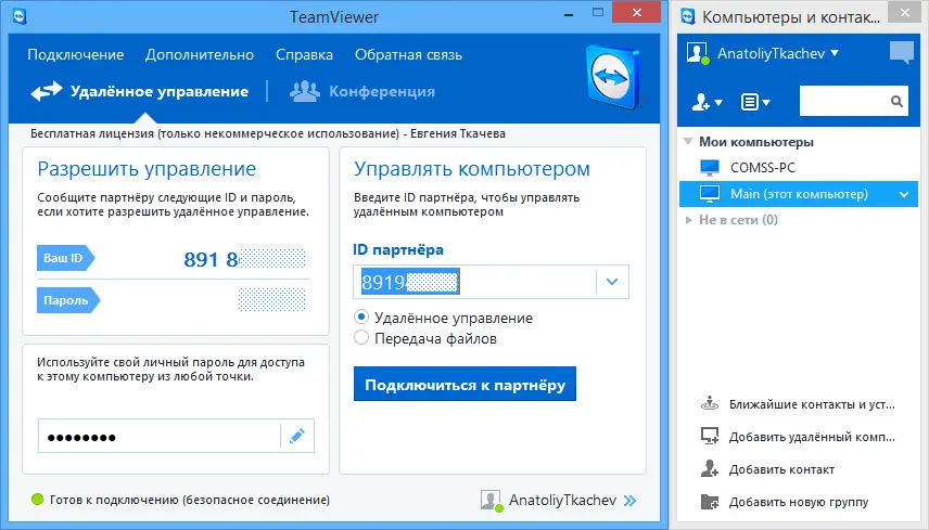 TeamViewer – популярная программа для удалённого доступа. Она проста в настройке: достаточно ввести ID и пароль, и соединение установлено.