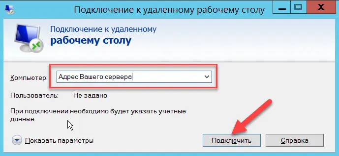 2. В открывшемся окне укажите имя компьютера или IP-адрес.