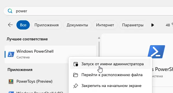 1. Откройте PowerShell (администратор).