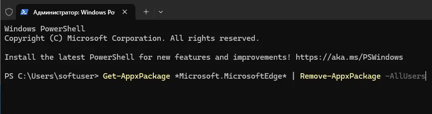 2. Выполните команду для удаления всех версий Edge: