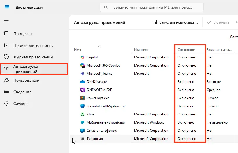 1. «Диспетчер задач» → вкладка «Автозагрузка».