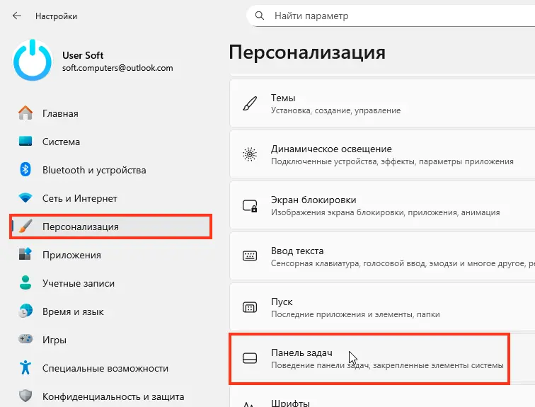 1. Нажмите Win + I → «Персонализация» → «Панель задач».