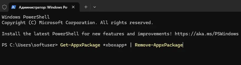 – Удаление Xbox: