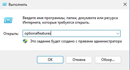 1. Нажмите Win + R → введите optionalfeatures.