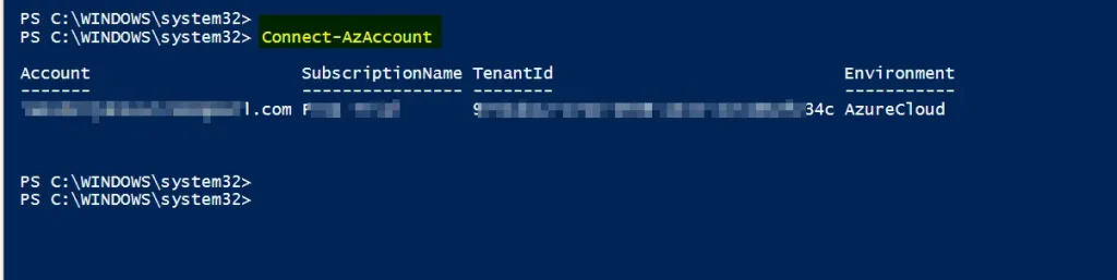 Чтобы войти в Azure через PowerShell, используйте команду: