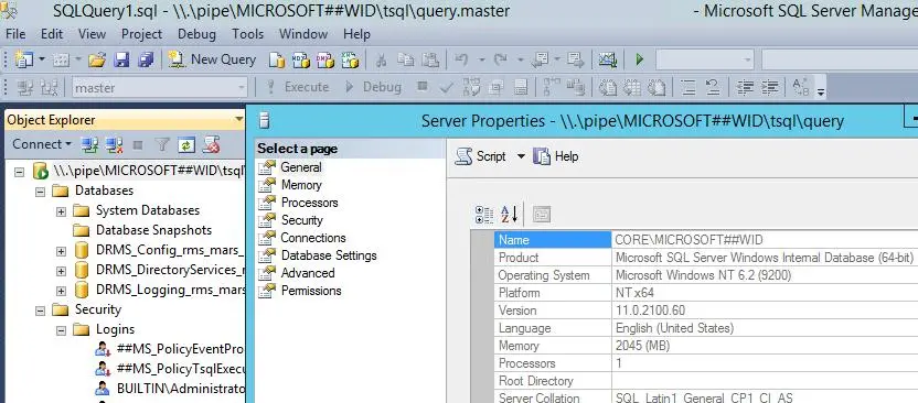 По умолчанию WID предназначена для управления через командную строку или скрипты, но также поддерживается работа через графический интерфейс с помощью SQL Server Management Studio. Рассмотрим оба подхода.