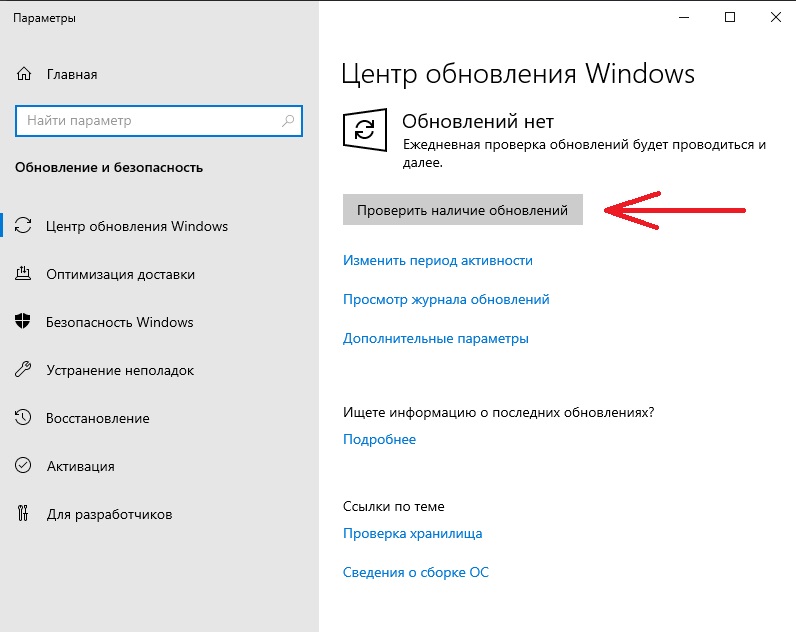 Нажимаем на кнопку “Проверить наличие обновлений”.