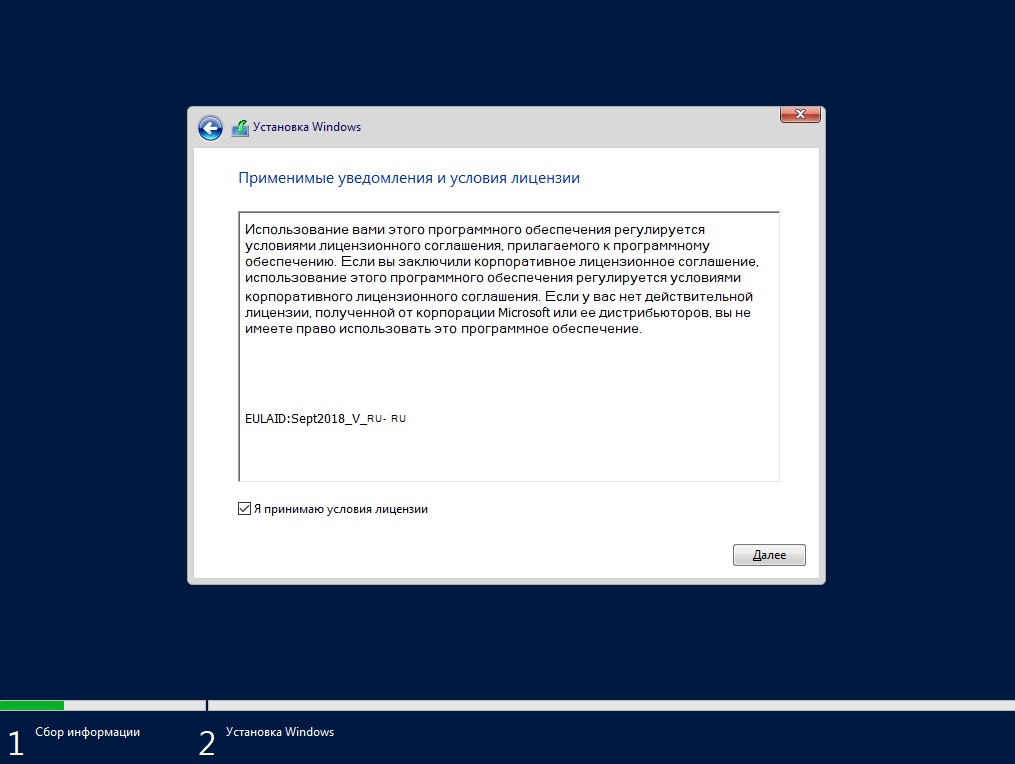 Выбираем язык операционной системы, выберем русский.