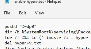 1. Для установки компонентов Hyper-V в Домашней редакции Windows 11 достаточно создать файл bat со следующим кодом: