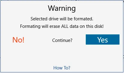 6. Подтвердите удаление всех данных с USB-накопителя, нажав Yes во всплывающем окне.