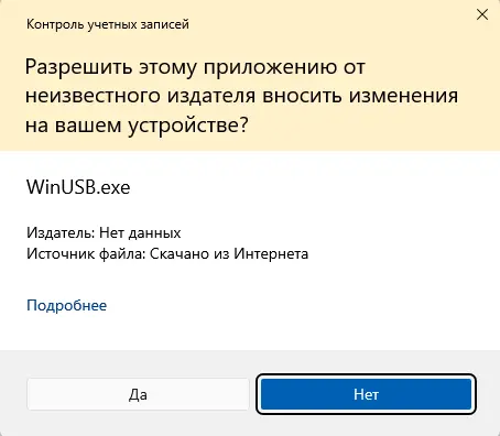 Скачать WinUSB можно с официального сайта разработчика или напрямую с нашего сервера. После загрузки откройте .exe файл и предоставьте программе разрешение на внесение изменений на устройстве.