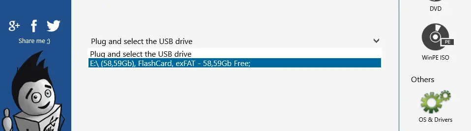 1. Запустите WinUSB и в разделе Plug and select the USB drive выберите USB-накопитель, на который хотите записать дистрибутив.