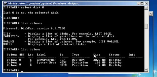3. Запустите diskpart и определите диски: