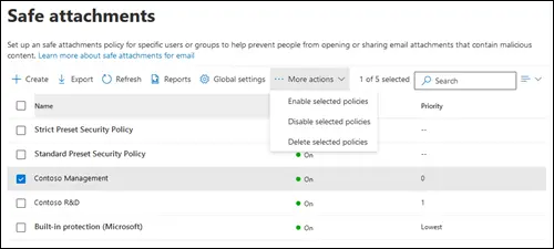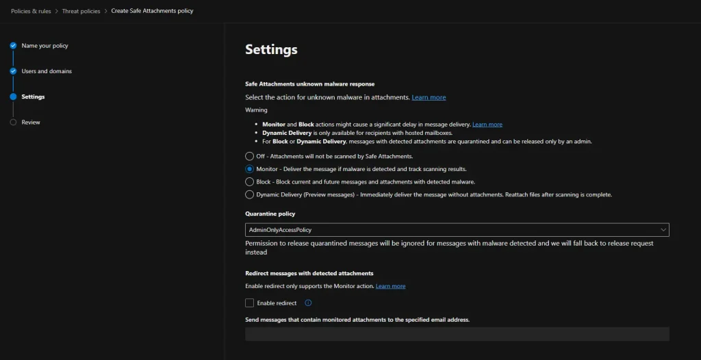Настройка Safe Attachments (Безопасные вложения)