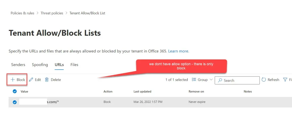 В разделе Threat policies -> Rules -> Tenant Allow/Block Lists вы можете точечно разрешить определенные URL или хеши файлов.