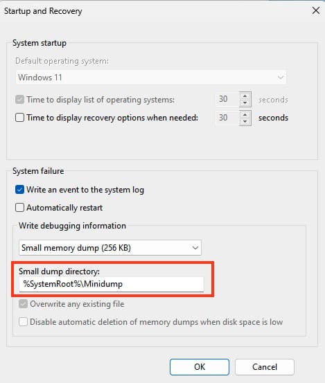 — Select «Small memory dump (256 KB)» from the dropdown menu.