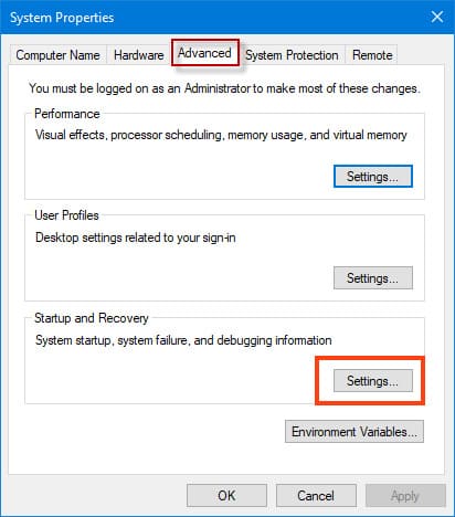 — In the «Advanced» section, select «Startup and Recovery» and click «Settings.»