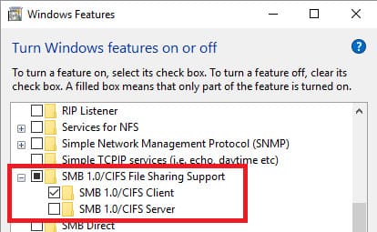 If your file server is running an outdated SMBv1, you must enable the “SMB 1.0/CIFS Client” on users’ computers to access such storage from modern versions of Windows 10 — (which is strongly not recommended).
