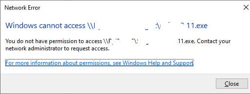 Access is denied to \\sharepath\file.exe. Contact your network administrator to request access.