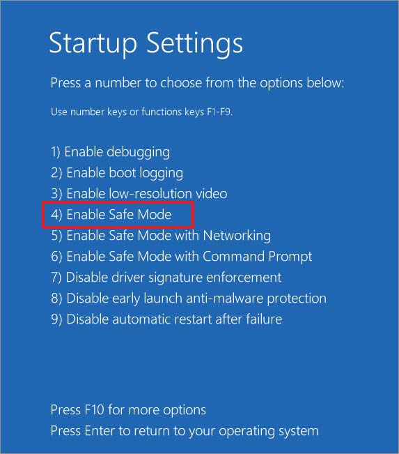 2. While in the Windows Recovery Environment (WinRE), select Troubleshoot > Advanced options > Startup Settings > Restart, and after restarting, choose option 4 by pressing F4.