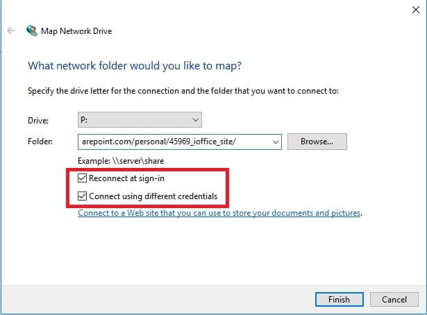 In the «Folder» input field, paste the address from the OneDrive page according to step 3’s instructions. Attention! Before the word «_layouts«. Make sure to check all the boxes.
