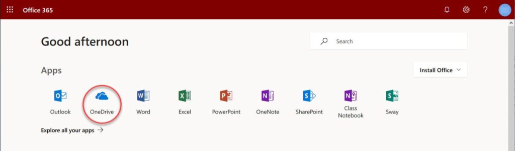 3) Now, you’re in your Microsoft Office account. Go to the OneDrive application.