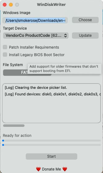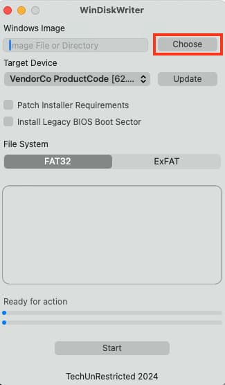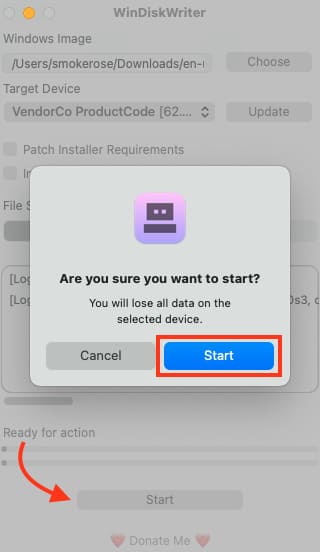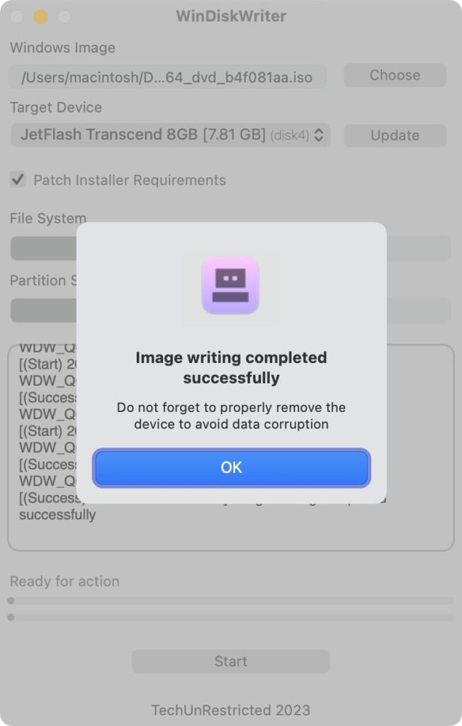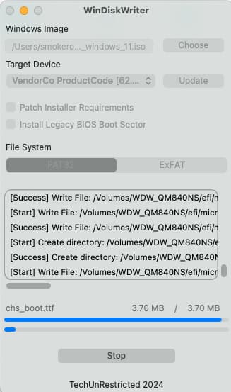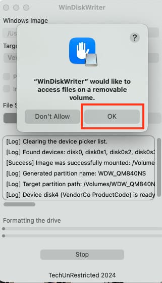 Let’s proceed with writing the Windows ISO image to the USB drive on a Mac.