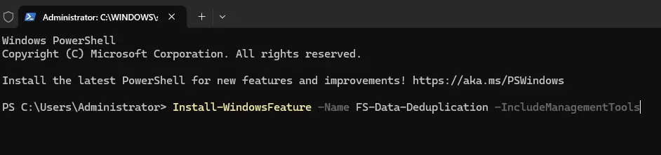 Install-WindowsFeature -Name FS-Data-Deduplication -IncludeManagementTools