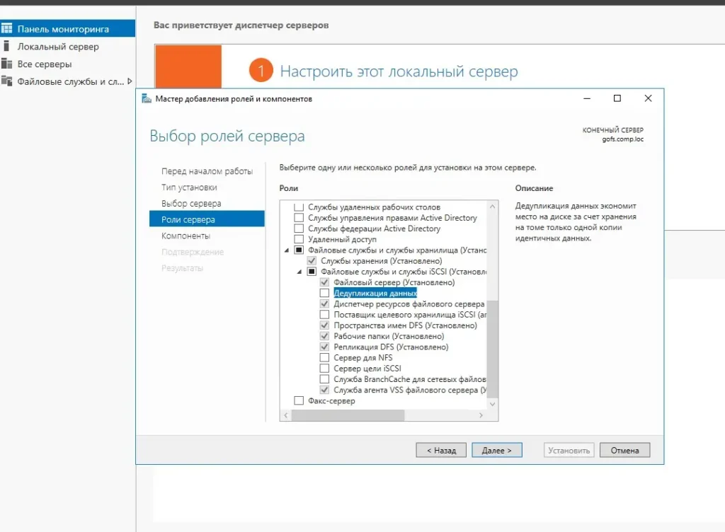 Установка роли Дедупликации данных