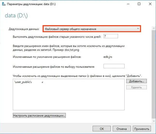 Дедуплицировать файлы старше (в днях): По умолчанию стоит 3 дня. Для файловых помоек можно ставить 0, чтобы процесс начинался сразу. Однако для активных серверов лучше оставить 3-7 дней, чтобы не тратить ресурсы CPU на файлы, которые все равно будут изменены или удалены завтра.