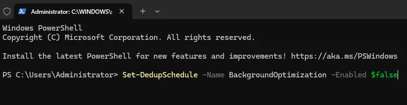 Set-DedupSchedule -Name BackgroundOptimization -Enabled $false