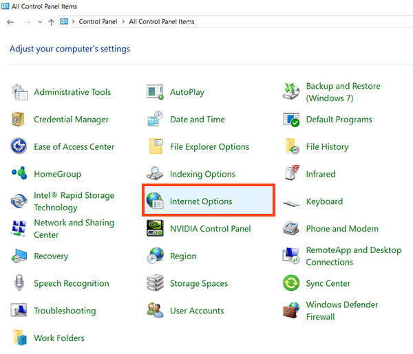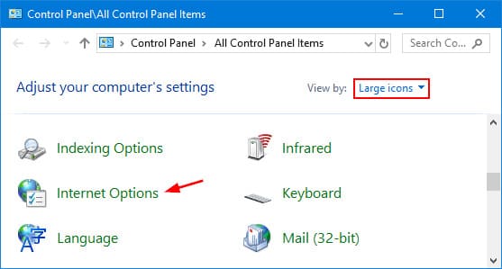 If the Control Panel is in icon view, find and open «Internet Options».