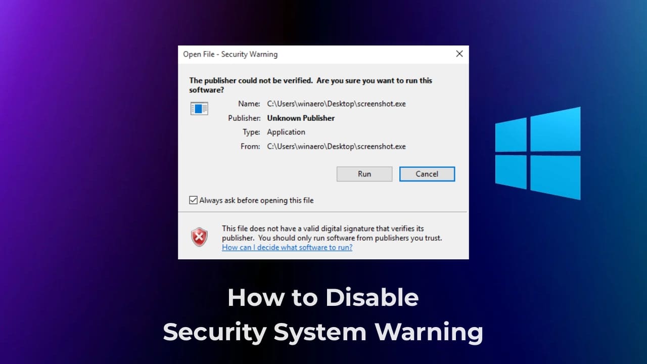 Disabling Security System Warning in Windows 10