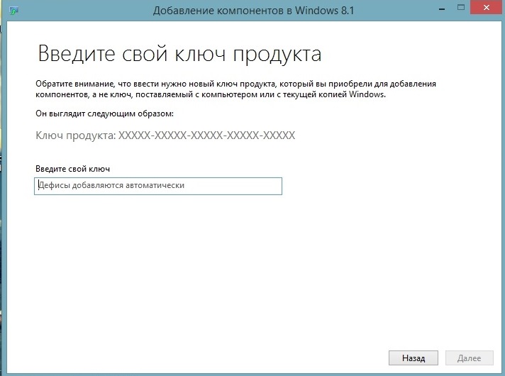 Если Вы попытаетесь добавить компоненты в Windows 8.1 Pro, то у Вас запросит ключ. Ключ активации для активации системы не подойдет, Вам нужен ключ для компонентов, он поставляется отдельно. Приобрести его можете через магазин Microsoft.
