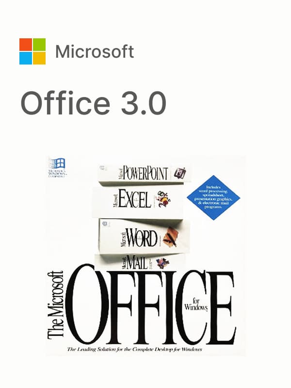 Официальный дистрибутив Microsoft Office 3.0 — это оригинальная версия офисного пакета, выпущенная в августе 1992 года. Пакет включал основные приложения для работы с документами, таблицами и презентациями, обеспечивая базовые инструменты для офиса и личного использования.
