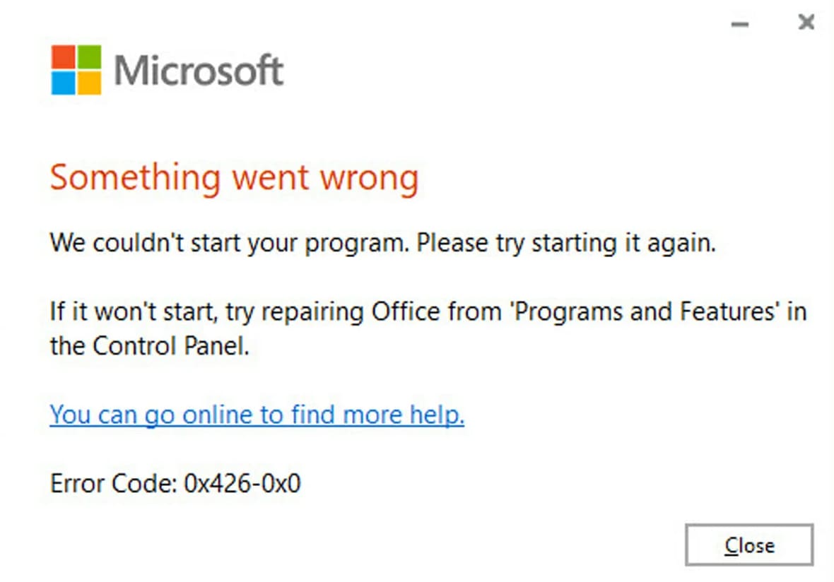 Sometimes, when installing the Office application, or even after installation when attempting to open it, you might encounter the error: 0x426-0x0. Let’s consider solutions to fix this: