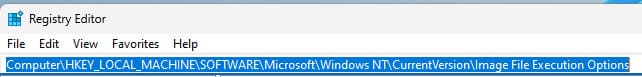 Open the path: Computer\HKEY_LOCAL_MACHINE\SOFTWARE\Microsoft\Windows NT\CurrentVersion\Image File Execution Options