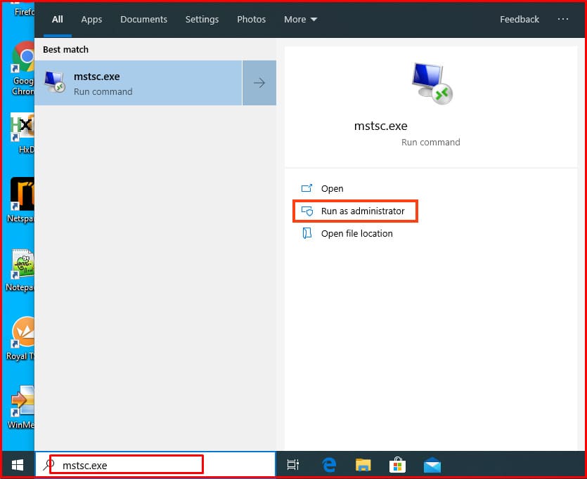 Close the registry editor and then run the mstsc.exe application with administrator rights on the client PC to avoid connection errors.