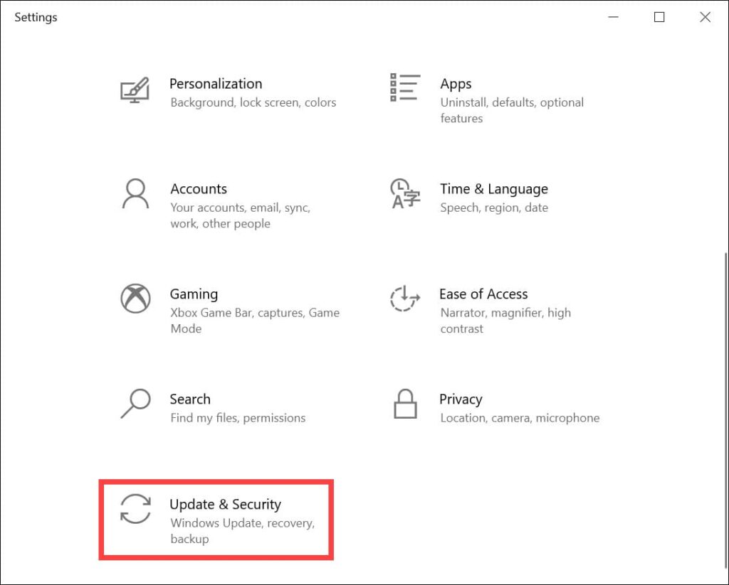 1. Open «Settings» in Windows 10 and go to «Update & Security».