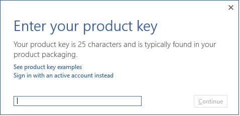 A window for entering the product key will appear. Enter your product key and click «Continue».