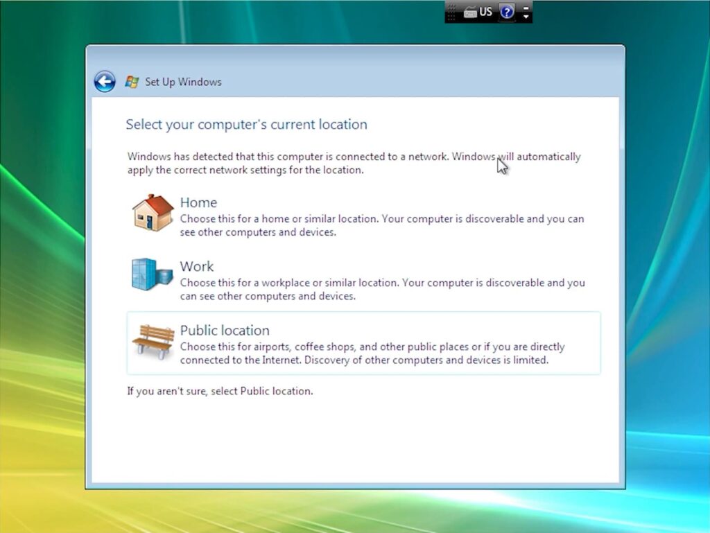 — For network settings, select the location where your PC will be used.