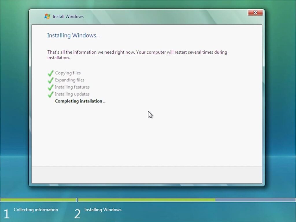 5. Wait for Files to Copy and Installation to Complete:
