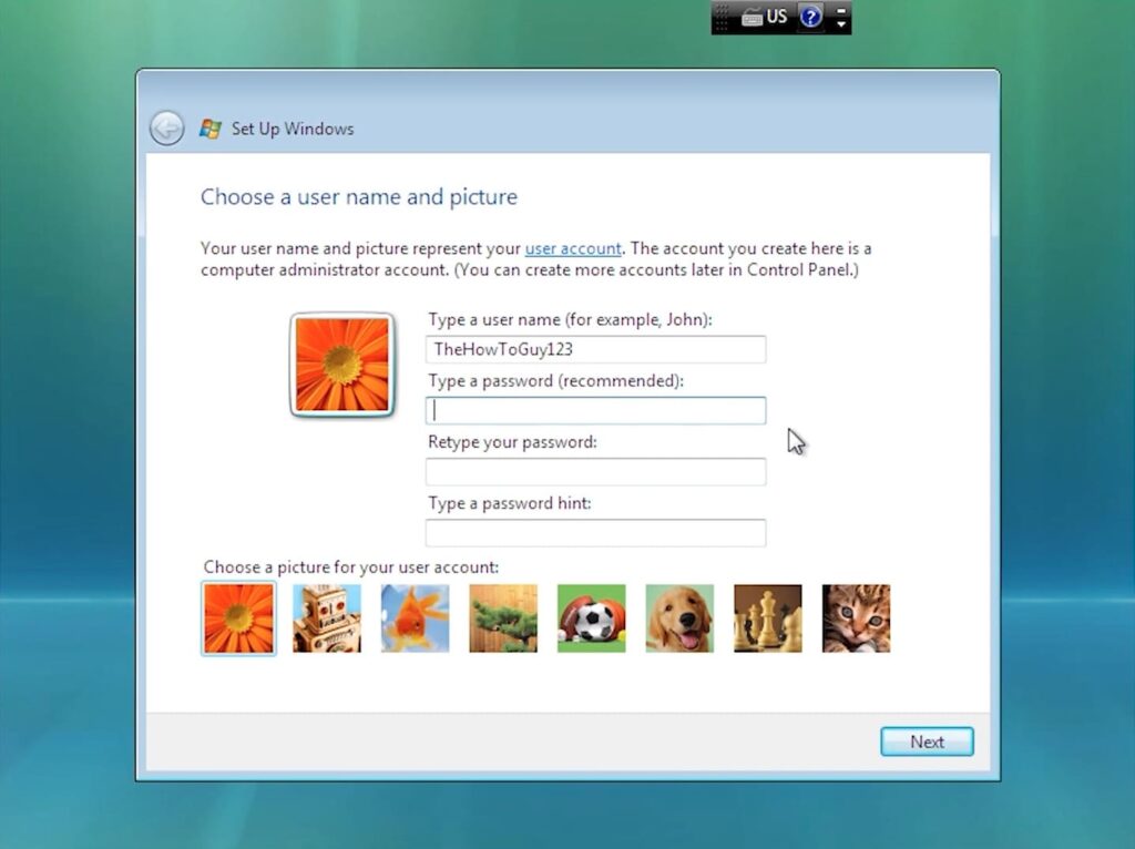 6. Set Up User and PC Information: