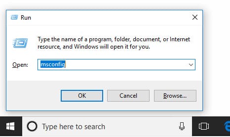 2) Press Win+R => type msconfig command.