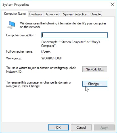 Next, in the new window, on the «Computer Name» tab, click «Change.»